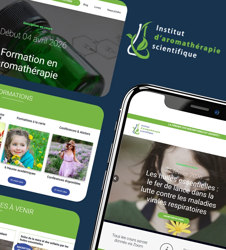 L’Institut d’Aromathérapie Scientifique (IAS) est une référence au Québec pour l’enseignement rigoureux des médecines alternatives. L’objectif était de créer une plateforme capable de gérer le calendrier complexe des formations (sessions annuelles, ateliers à la carte) tout en valorisant l’expertise scientifique de l’institut.
