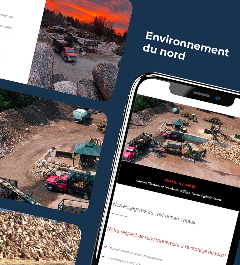 Le Centre du Bois de Chauffage souhaitait une présence en ligne capable de capter la demande locale sur la Rive-Sud de Montréal. Le mandat était de créer un site simple, rapide et efficace pour promouvoir leur bois de qualité supérieure (séché artificiellement) et faciliter la logistique de livraison.