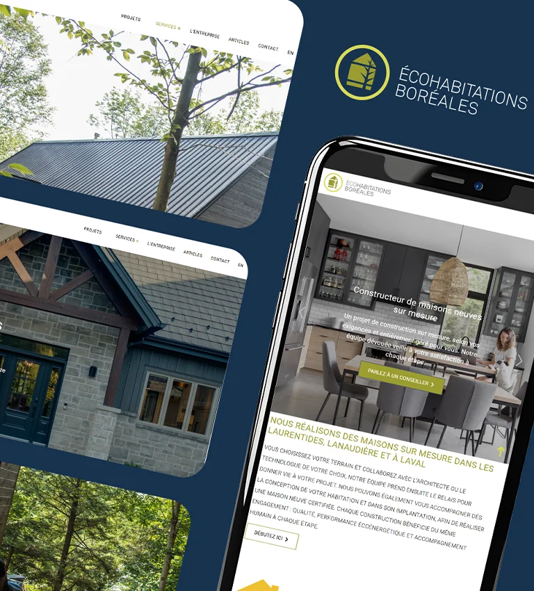 Écohabitations Boréales est un pionnier de la construction écologique au Québec. L’objectif était de créer une plateforme qui reflète la qualité supérieure de leurs réalisations tout en éduquant la clientèle sur les avantages des certifications LEED et Novoclimat.