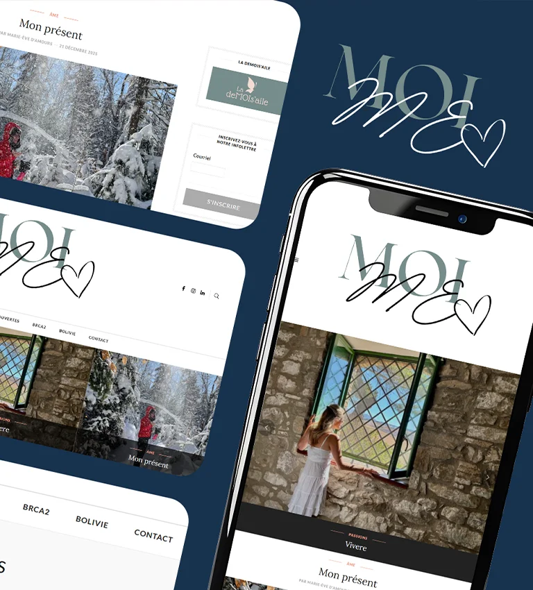 Moi ♥ ME est le prolongement numérique de l’univers de Marie-Ève D’Amours. Plus qu’un simple blog, c’est un espace de confidences et de partage communautaire. Le défi était de créer un design doux et épuré qui laisse toute la place aux textes et aux émotions, tout en restant techniquement performant.