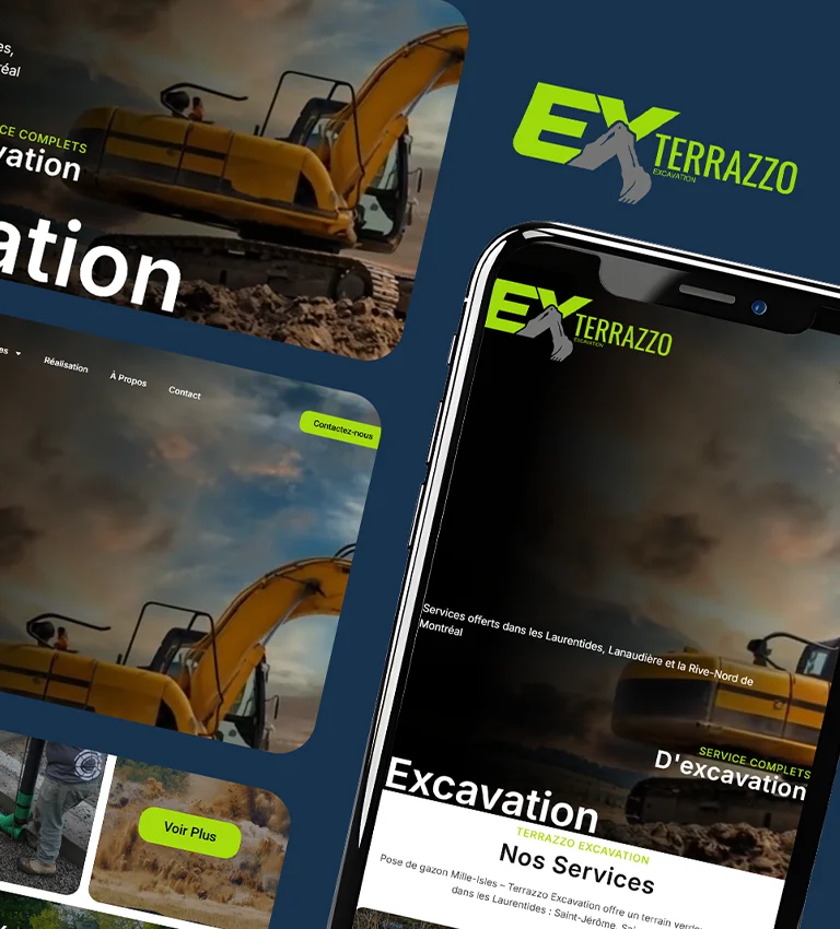 Conception d'un site vitrine complet pour une entreprise spécialisée dans l'excavation et la démolition. Le site met en lumière la polyvalence de l'entreprise (du terrassement à la finition esthétique) et couvre ses zones de service (Laurentides, Lanaudière et L'Outaouais). Il intègre des galeries de réalisations et un outil de demande de soumission pour capter des leads qualifiés.
